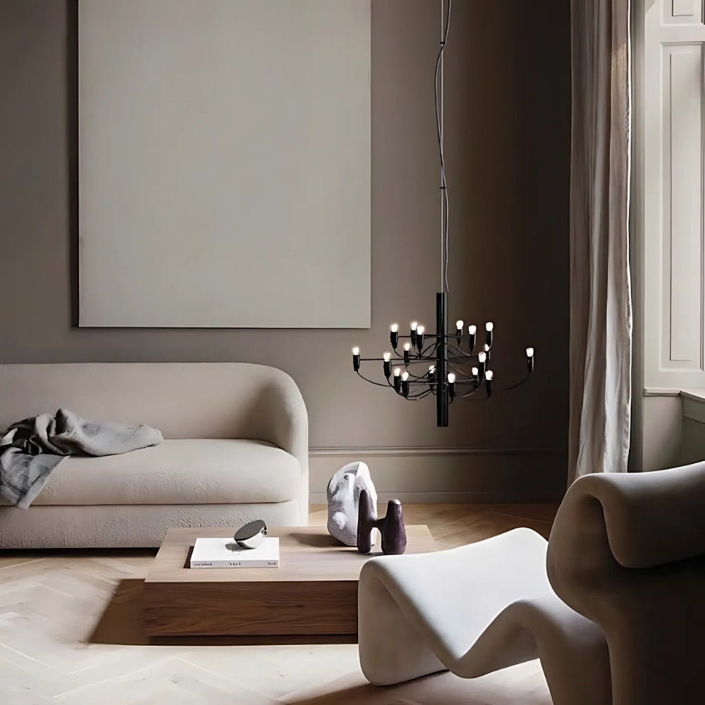 Denna ljuskrona är en tidlös inredningsdetalj och den ultimata ljusspridaren i ditt hem. Med sina 18 ljuspunkter och imponerande form, skapar den ett sofistikerat fokus i både moderna och klassiska miljöer. Dess skulpturala design fångar uppmärksamheten oavsett rum – från matsal till vardagsrum eller hotellobby.